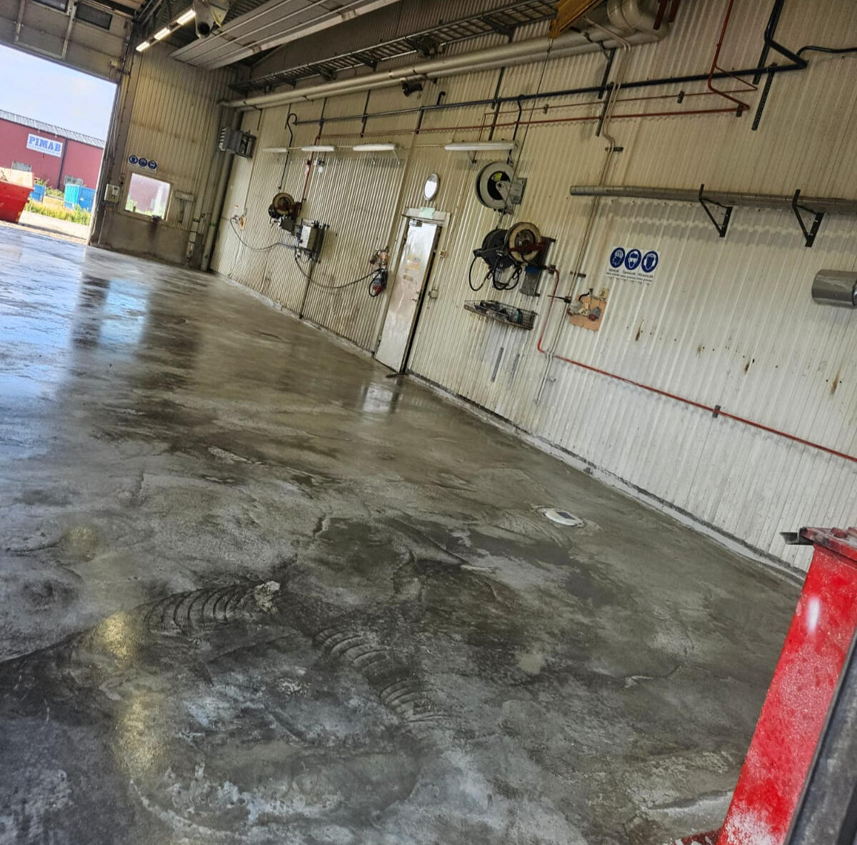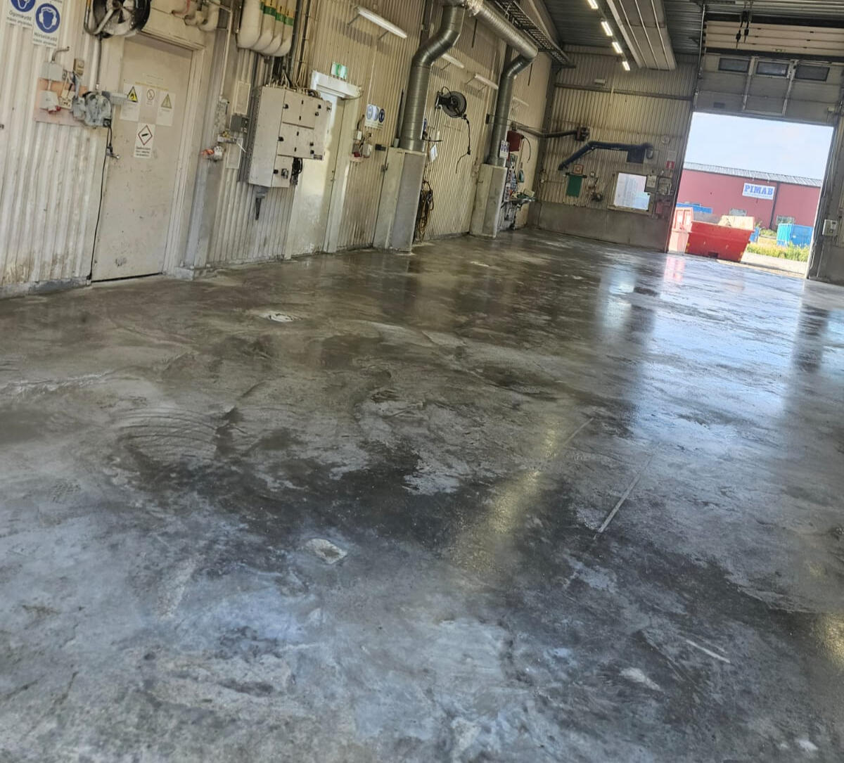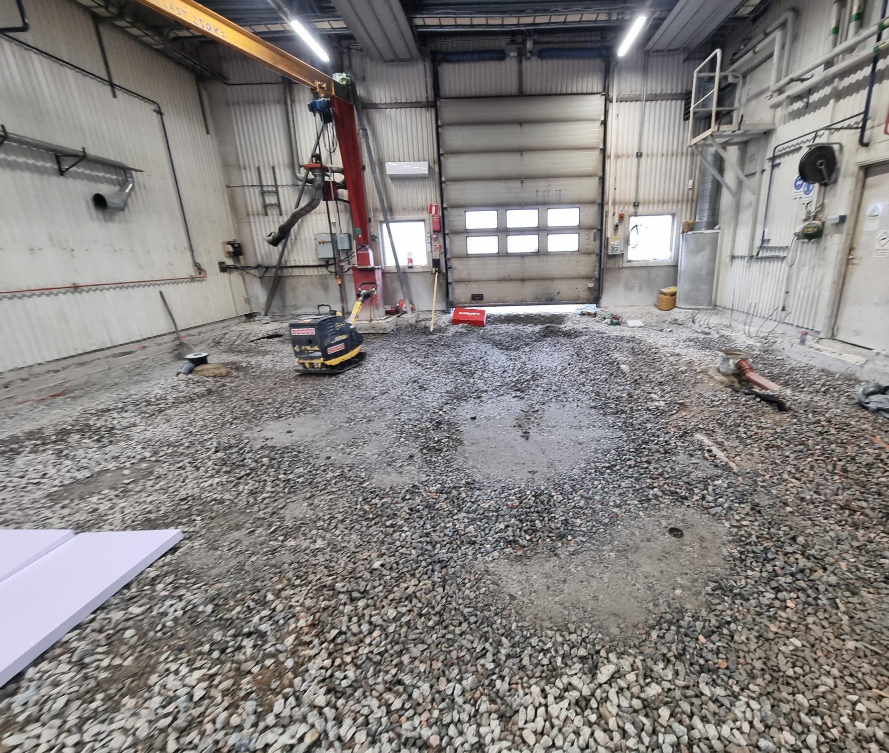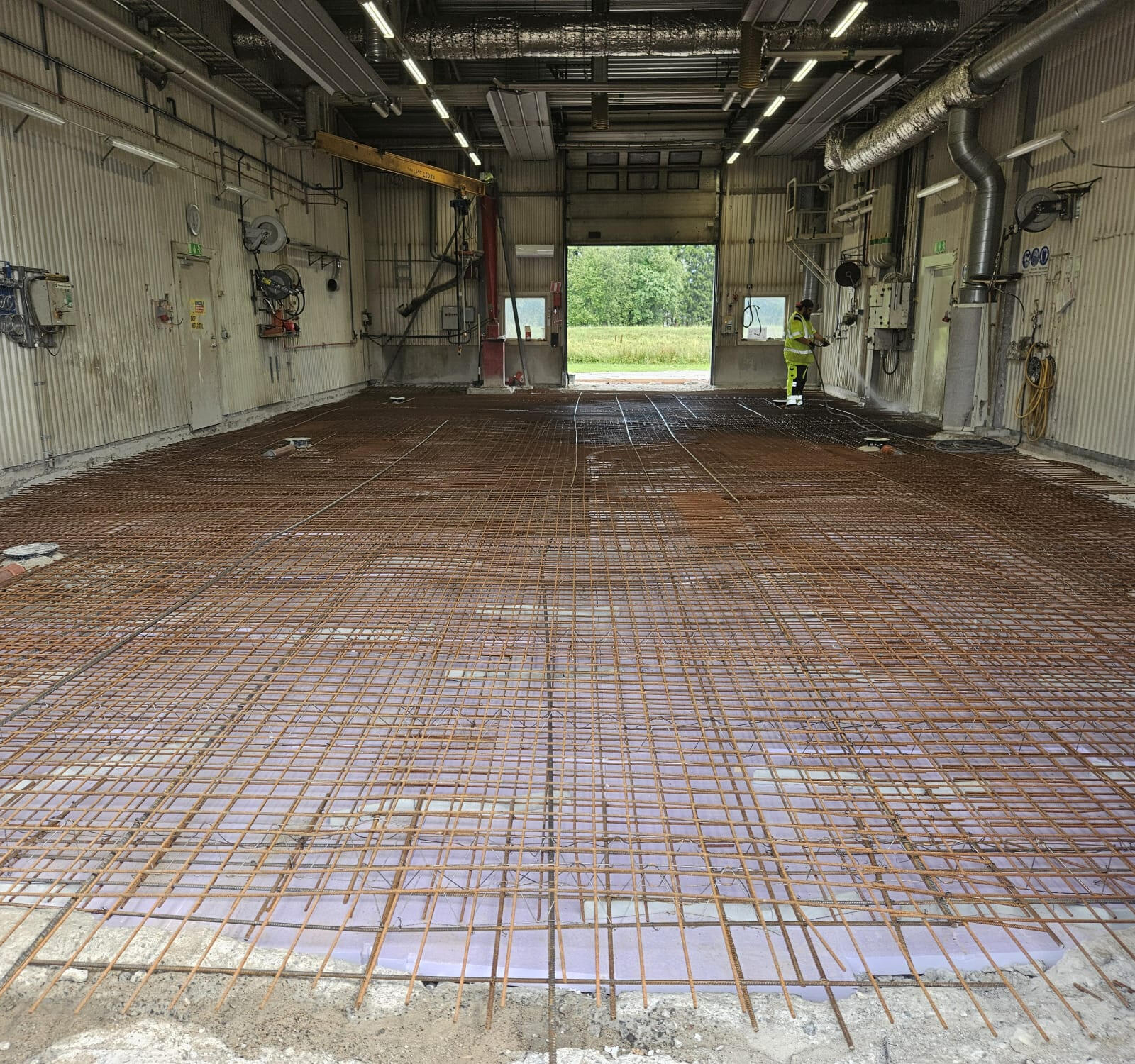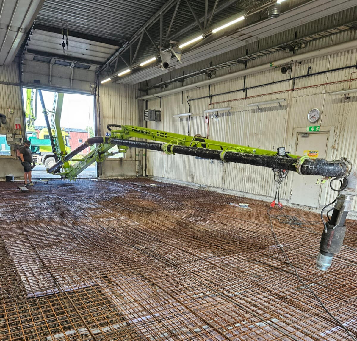 Vi gjöt ett industrigolv på 200 m² för en maskinhall i Kiruna. Fokus låg på slitstyrka och hållfasthet.