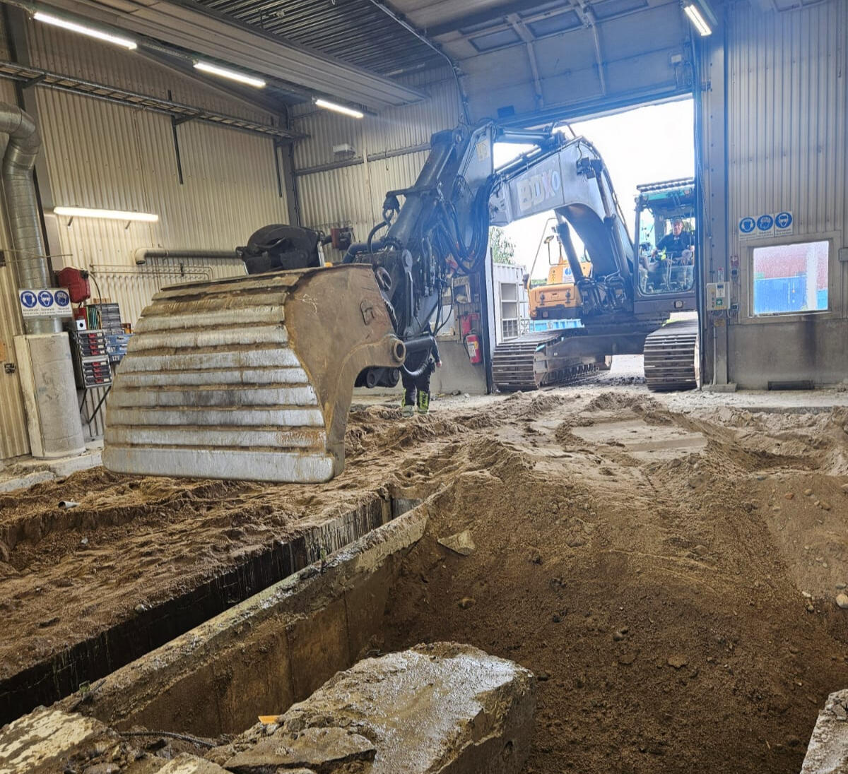 Vi börjar med att schakta och förbereda marken. Detta steg är avgörande för dränering, isolering och hållbarhet.